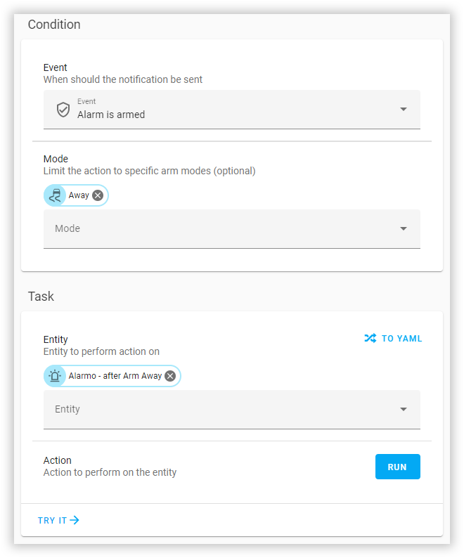 - if: "{{ is_state('alarm_control_panel.alarmo', 'armed_away') }}"