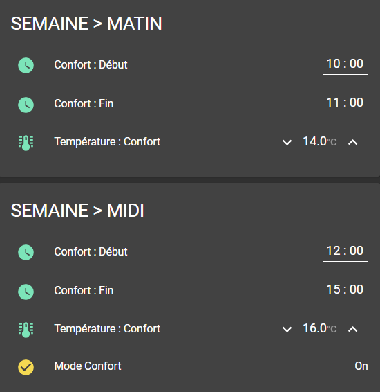 Pour mémoire, afin de planifier un peu finement pièce par pièce un chauffage électrique par convecteurs, on a principalement trois possibilités dans Home Assistant :