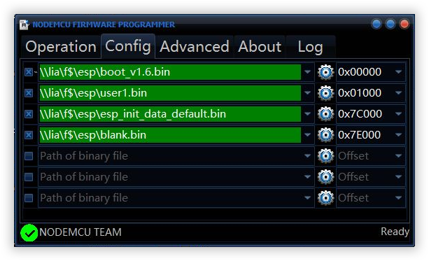Si la plupart des outils de flashage sous Windows fonctionnent, et même Tasmotizer, (Mathieu si tu me lis...), on va avoir besoin ici de flasher plusieurs fichiers .bin à des adresses particulières et le seul utilitaire qui a fonctionné est NodeMCU Firmware Programmer, qui selon les ESP utilisés permet de les fichiers flasher au bon endroit...