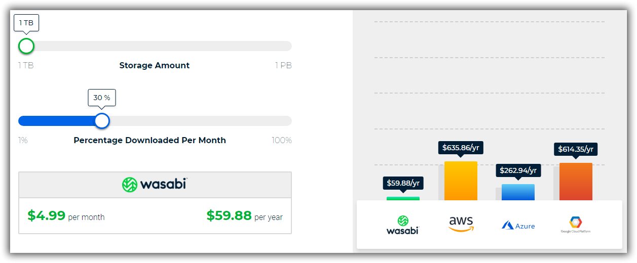 - C’est Wasabi qui m’a poussé vers le Storage cloud. C’est très abordable. Il n’y a pas de frais de de transfert, c’est donc le plus intéressant. Leurs Data center sont aux Etats-Unis, mais l’ouverture en 2019 d’un site aux Pays Bas les rends conformes RGPD. Et rien n’empêche un petit chiffrage à la volée… Leur tarification est très simple : 1 TO c’est $ 4.99 / mois, sans frais annexes.