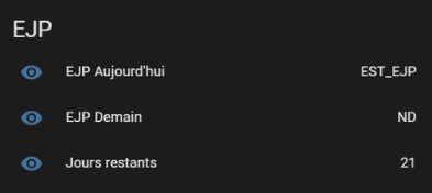 Pour exploiter ces information dans Home Assistant il sera souvent plus facile d'utiliser un binary_sensor:, voici donc l'exemple pour le tarif EJP :