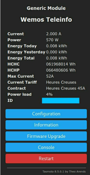 • sensor.teleinfo_energy_total : consommation totale depuis initialisation du module (reset manuel, peut-être programmé en début d'année pour calculer une consommation annuelle avec Tasmota)